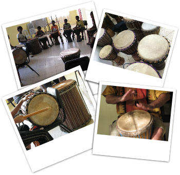 בסדנא מתופפים בדרבוקות, תופים אפריקאיים וכלי הקשה לטיניים.